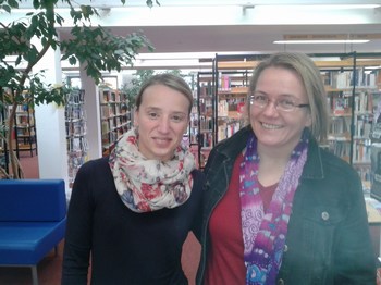 Fachangestellte für Medien- und Informationsdienste Manuela Rinaldi und Diplom-Bibliothekarin Synnöve Schwieger.